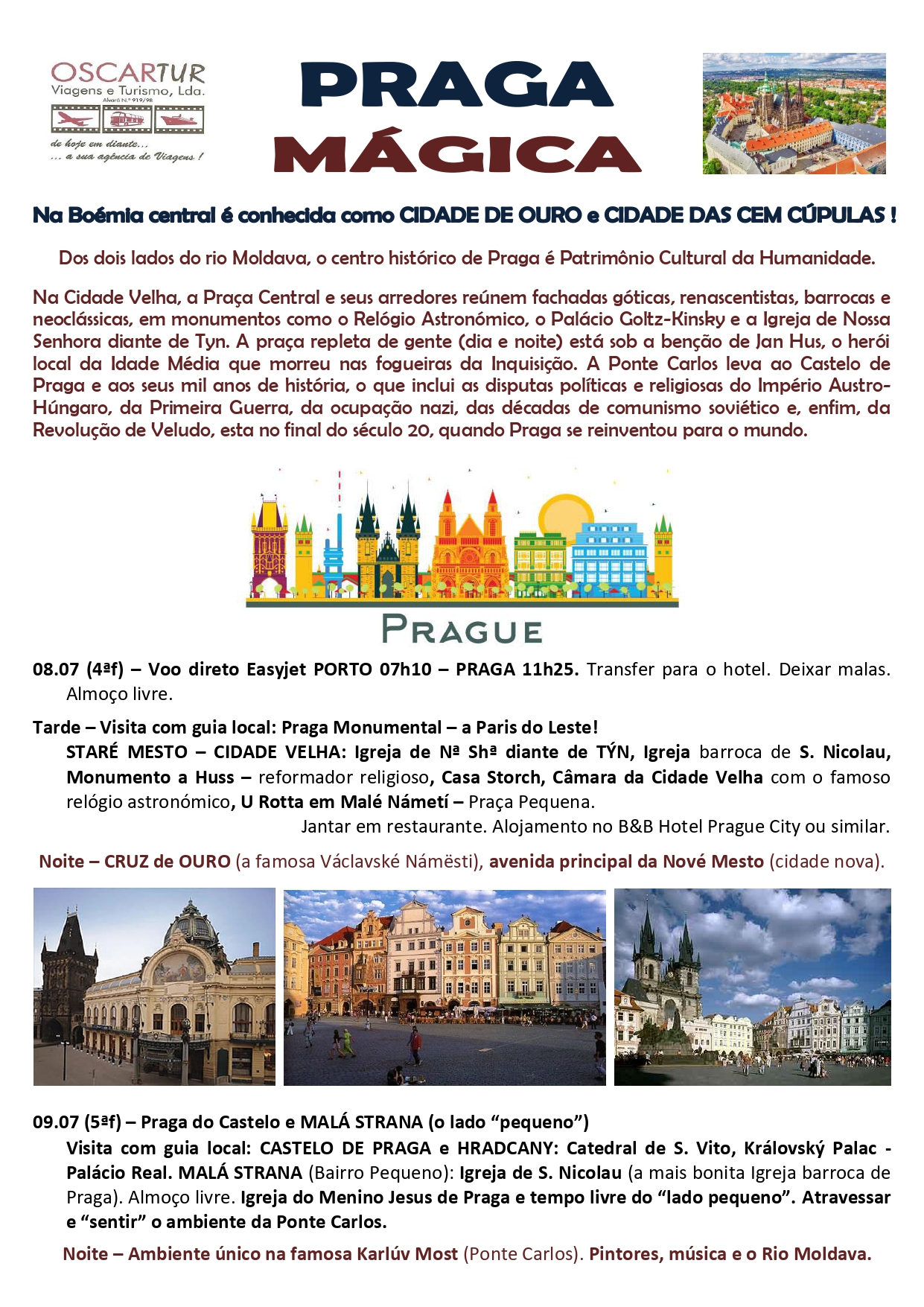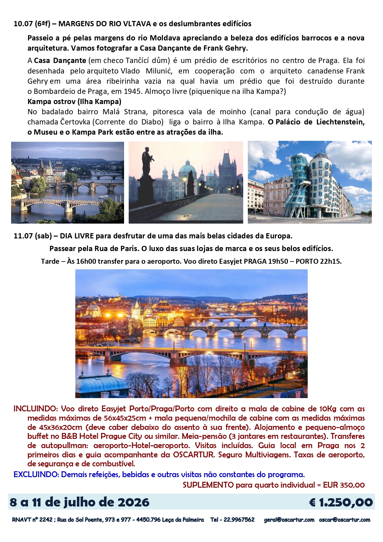 - Guia local em Praga nos 2 primeiros dias e guia acompanhante da Oscartur