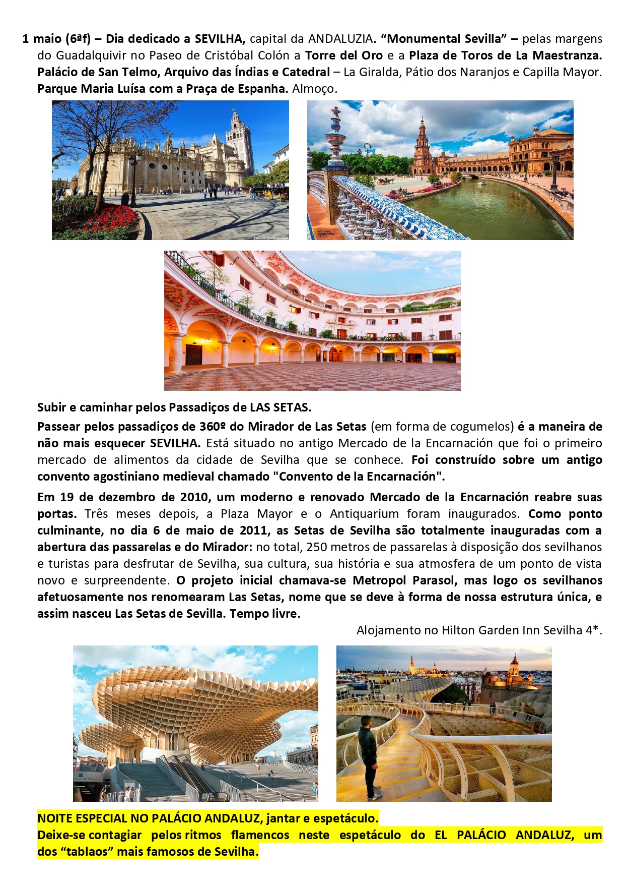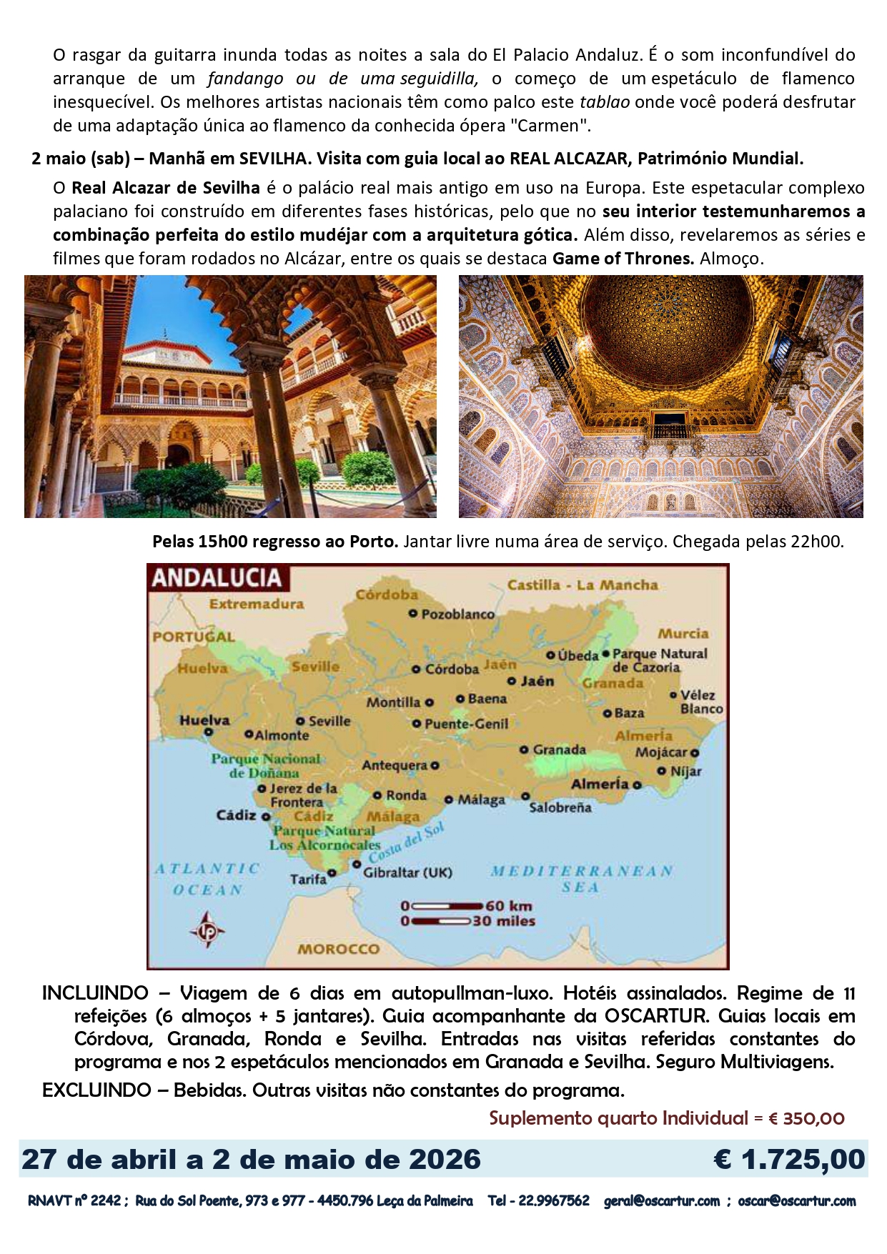 - Entradas nas visitas referidas constantes no programa e nos 2 espetaculos mencionados em Granada e Sevilha